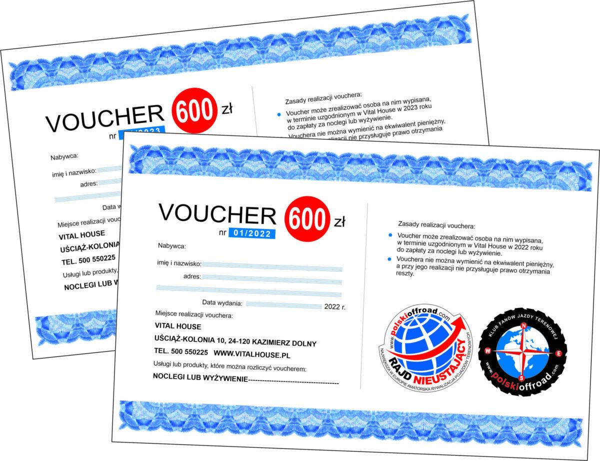 Wydamy je zwycięzcom edycji 2021 oraz 2022 Rajdu Nieustającego, a można je będzie zrealizować w dowolnym terminie uzgodnionym bezpośrednio z Vital House.
